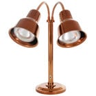 Warm and display your freshly cooked dishes with style and ease thanks to this Hanson Heat Lamps DLM/600/ST/SC dual bulb flexible freestanding heat lamp! Great for use at your buffet, catered event, or banquet hall, this heat lamp ensures your prepared foods will taste warm and fresh for all of your guests. Because it features a portable design with flexible goosenecks to aim the light, this heat lamp can be placed over any product including meat at a carving station, cooked vegetables in steam pans, or even baskets of freshly baked bread! Its two 6 1/2" conical shades combine with an attractive smoked copper finish to provide a sleek, professional appearance, while its 9" round base provides a sturdy, stable foundation.