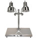 Keep your most popular meats, breads, and other specialty dishes hot as you cut and serve them with the Hanson Heat Lamps DLM/HB/SS/2024 dual bulb 20" x 24" stainless steel carving station! This carving station features two lamps with single heat bulbs mounted on a tall, centered stand, which provides adequate clearance for you to cut up a delicious meal in front of your customers. The stainless steel base offers natural rust- and corrosion-resistance and is easy to clean. It's even built with a powerful heat supply to ensure that product is of a uniform temperature upon service.