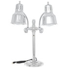 Warm and display your freshly cooked dishes with style and ease thanks to this Hanson Heat Lamps DLM/RB9/SOL/SS dual bulb flexible freestanding heat lamp! Great for use at your buffet, catered event, or banquet hall, this heat lamp ensures your prepared foods will taste warm and fresh for all of your guests. Because it features a portable design with flexible goosenecks to aim the light, this heat lamp can be placed over any product including meat at a carving station, cooked vegetables in steam pans, or even baskets of freshly baked bread! Its two 6 1/2" conical shaped aluminum shades combine with an attractive stainless steel finish to provide a classic, professional appearance, while its 9" solid round base provides a sturdy, stable foundation.