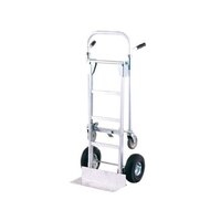 This helpful hand / platform truck features two 10" x 3 1/2" heavy duty pneumatic all-terrain tires to help provide a sturdy base and add cushion for going over curbs. Additionally, two 5" mold-on urethane swivel casters add mobility in the platform truck configuration. The durable, aluminum frame can handle up to 850 lb. in its platform configuration and 600 lb. in its upright position, so you can be sure it will stand up to the rigors of almost any application.