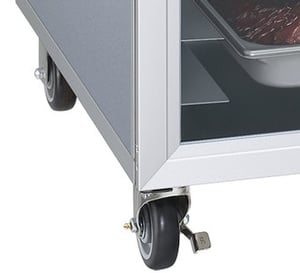 This space-saving cabinet is ideal for buffet lines, drive-up windows, and serving counters. Easily move the unit from one area to another on the caster wheels. Set the locks on the casters to ensure safe, stable usage for employees.
