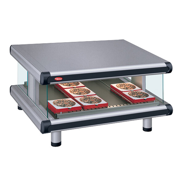 Showcase delicious wrapped food like breakfast sandwiches, hamburgers, pizza, nachos, and more with the Hatco GR2SDS-36 gray granite Glo-Ray Designer 36" slanted single shelf merchandiser! The unit's sleek aluminum, stainless steel, and tempered glass construction makes a great focal point on any countertop, and it features attractive black color insets (additional colors available upon request). It's perfect for encouraging impulse and point of purchase sales, and customers are able to easily serve themselves thanks to the open front!