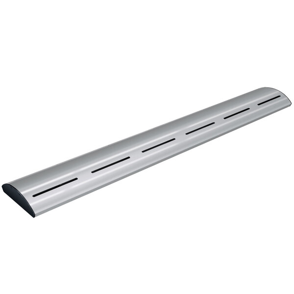 Combining the renowned technology of Glo-Ray strip heaters with a stylish curved design, this Hatco GR5A-54 Glo-Ray 54" curved infrared food warmer is a perfect addition to front of the house applications! Great for buffet lines, serving lines, and even safe for use over steam tables, this unit's subtle curves and sleek anodized housing provide you with an attractive way to hold your meats, vegetables, fried foods, and other fare at food-safe temperatures. Its metal sheathed infrared heating elements deliver 925W of heating power, while the pre-focused heat maintains safe serving temperatures longer than competitive models without cooking the food or creating unappetizing cold spots.