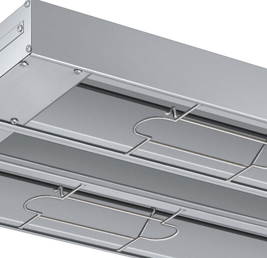 This 1150W infrared warmer uses a pre-focused heat pattern and angled reflectors to ensure maximum food holding. The wide, dual design is capable of covering a larger area for your convenience. Once mounted, this warmer keeps your hot foods at optimal serving temperatures longer without drying out or discoloring product, including your most delicate dishes.