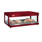 Showcase delicious wrapped food like breakfast sandwiches, hamburgers, pizza, nachos, and more with the Hatco GRSDH-24 antique copper Glo-Ray horizontal single shelf merchandiser. The unit's sleek aluminum and tempered glass construction makes a great focal point on any countertop to encourage impulse and point of purchase sales, and customers are able to easily serve themselves thanks to the open front.