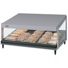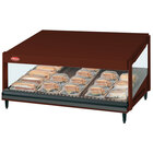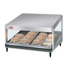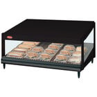 Showcase delicious wrapped food like breakfast sandwiches, hamburgers, pizza, nachos, and more with the Hatco GRSDS-52 hunter green Glo-Ray 52" slanted single shelf merchandiser. The unit's aluminum and tempered glass construction makes a great focal point on any countertop to encourage impulse and point of purchase sales, and customers are able to easily serve themselves thanks to the open front.