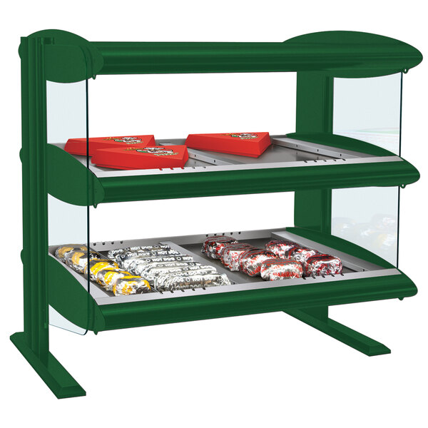 Hatco HZMH-24D Hunter Green 24" Horizontal Double Shelf Heated Zone Merchandiser - 120V