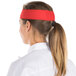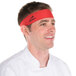 Provide maximum comfort and style for your restaurant's kitchen team with the classic styling of this red high-performance fabric headband. Busy chefs and cooks will love the absorbency, especially in a hot kitchen setting. Made with performance fabric, this one-size-fits-most headband also allows for easy custom logo application.