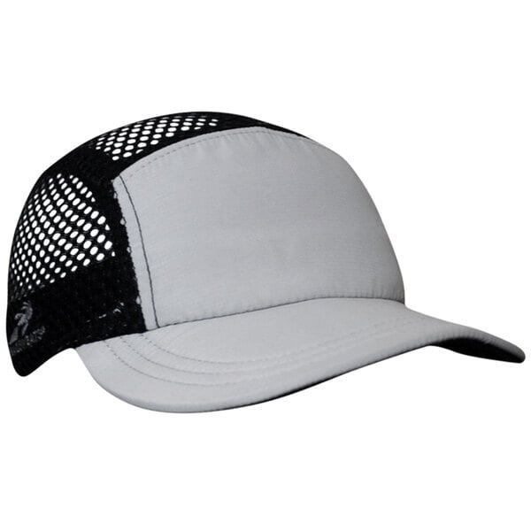 Provide maximum comfort and style for your restaurant's kitchen team with the classic styling of this Headsweats gray customizable crusher hat! Made with proprietary Eventure performance fabric technology, the 5 panel mesh design provides maximum airflow, and the terry sweatband helps to keep the sweat off your face. Each Headsweats cap also features an adjustable back closure and ponytail opening for a one-size-fits-most design. It's lightweight yet durable for lasting comfort during each wear.