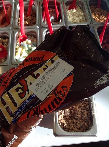More than an ice cream topping, this chopped HEATH toffee bar topping can be used in your cookie batter to create deliciously sweet cookies. You can also garnish cakes or cupcakes with toffee and chocolate flavors. Offer them at your soft serve or frozen yogurt bar so your patrons can add just the right amount of flavorful ice cream toppings to their dishes. Whichever way you use them, they're certain to enhance your menu with new, satisfyingly sweet items!