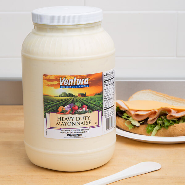A great priced mayonnaise in a sturdy gallon jar. It has a great texture and flavor. It is perfect for mixing into our chicken salad and tuna salads.