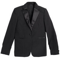Highlight the sophistication of your establishment with this Henry Segal men's customizable black tuxedo jacket. Featuring a stylish, satin notch lapel, this jacket delivers a clean, professional appearance that is sure to elevate your overall presentation. This jacket makes it easy to ensure sophisticated uniformity in your high-end restaurant, bar, banquet hall, casino, or catering operation. Made with 100% woven polyester, this jacket is the ideal choice for servers, hosts, and front-of-house staff members. The polyester material is machine washable for added convenience, and it resists wrinkles and fading to keep your staff looking their best day after day.