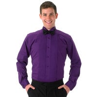 Highlight the sophistication of your establishment with this Henry Segal unisex teal tuxedo shirt with wing tip collar. Made from a high-quality 65/35 polyester-cotton broadcloth, this shirt does not sacrifice strength for comfort; it is both soft to the touch, providing comfort and breathability throughout shifts, and tightly-woven, capable of enduring the demands of daily commercial use. The blended material also resists wrinkling and shrinking and is machine washable, making it easy for your staff to maintain that desired sharp, clean look. This shirt is designed with twelve 1/4" pleats on either side, delivering a formal and streamlined presentation that will have the servers at your high-end restaurant, banquet hall, or catered receptions looking most refined.