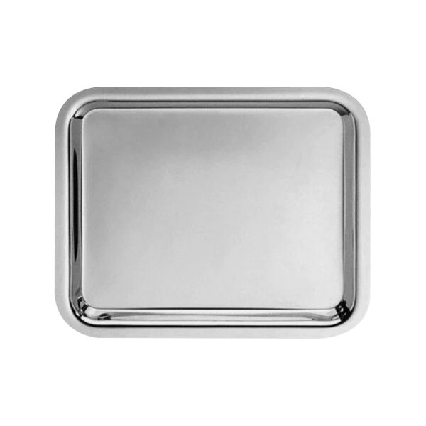 Enhance the presentation of your culinary creations with the Hepp Neutral from BauscherHepp 18 1/8" x 13 1/8" rectangular serving tray. Crafted with durable 18/10 stainless steel, this tray is built to withstand the demands of busy catering events, parties, and buffets. Its elegant mirrored finish adds a touch of sophistication to any table setting, making it perfect for both casual and formal occasions.