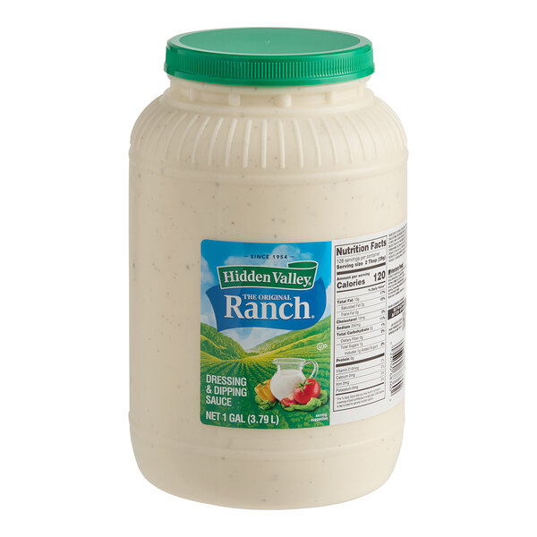 This product enhances your salads with the quality taste your customers have come to expect from the Hidden Valley name brand. This premium dressing is packed in a bulk gallon size with a resealable cap to keep your business in good supply. Ready to use right out of the container, this dressing has a variety of uses for your menu.