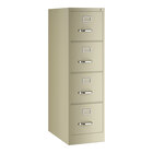 Keep your important files safe and organized with this Hirsh 17546 black four-drawer vertical letter file cabinet. Great for any business or professional office, this cabinet is built to be a space-saving addition, helping you keep letter-size patient, client, or project files organized without cluttering up wall or desk space. Featuring convenient thumb latches, you can be confident that the drawers won't slide open by accident. Plus, the durable construction and hard baked enamel finish ensure that this filing cabinet will withstand everyday use.