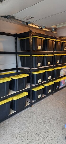 I would give these shelves 5 stars but the way they ship them is awful. They are so heavy that they should be broken into 2 boxes. Shipping company couldnt even get them to the front door. They just left them at the end of the driveway. I do love the shelves which fit 20gal. plastic totes perfectly and the price is a great deal compared to others I researched.