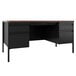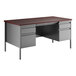 With its durable mahogany laminate top, this double pedestal desk looks sleek and modern in many office environments. Plus, the smooth surface is great for writing. The legs match the charcoal metal desk base, and they even have leveling glides to keep the top stable and level when your floors are uneven.