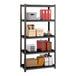 The frame is made of durable riveted steel with a gunmetal gray powder coat finish that provides rust resistance for a longer product life. Each shelf is made of rugged black laminated material, too. Since the shelves are solid, they are great for storing items that might tip over or fall through regular wire shelves or vented shelves.