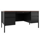 Equip your classrooms or offices with this Hirsh Industries 22655 platinum / white double pedestal teacher's desk. This sturdy metal desk is a professional solution for many business, government, or school applications. With its durable laminate top, this desk looks sleek and modern in many classroom environments. The top provides plenty of space for computer monitors, calendars, paper trays, or even small printers and scanners. Plus, the smooth surface is great for writing. The legs match the metal desk base, and they even have leveling glides to keep the top stable and level when your floors are uneven.