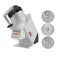 The Hobart FP250-1A continuous feed food processor comes complete with everything you need to quickly slice or shred fresh vegetables, fruits, and even cheese. It includes (1) 1/16" slicer plate, (1) 5/32" slicer plate, and (1) 3/16" shredder plate. Each unit is designed with a 50 degree angled front for operator convenience and rapid product loading. A large, full size feed hopper supports processing capabilities for a wide variety of products, while permitting continuous cutting of long products.
