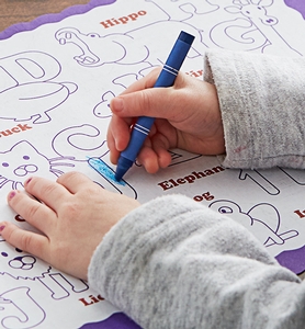 Not only is each placement fun to color, but it includes fun, interactive games to get young diners thinking and learning. Games include a word search, maze, tic-tac-toe game, and several coloring games, as well as other fun activities.