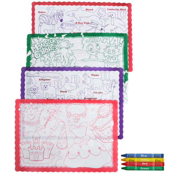 Perfect for any business, this placemet features fun illustrations and visually-appealing, themed designs ranging from tiaras to animals and monsters. While your young guests wait for their meals, they can have fun coloring!
