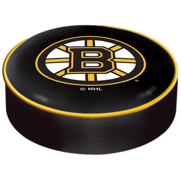 Boost your guests' enthusiasm by showing support for their favorite team with this Holland Bar Stool BSCBosBru 14 1/2" Boston Bruins bar stool seat cover! Featuring the team's unmistakable logo on a black background, this cover is hand-made with great care from resilient woven back vinyl and boasts intricate silk screening that provides the design with the greatest detail possible. Simply slip the cover over a 14" x 4" cushion and it will be held securely in place by a reliable elastic band. A great addition to bars, game rooms, and sports lounges, this cover is officially licensed by the NHL to ensure top-notch quality that's sure to have sports fans cheering "let's go Bruins!"