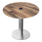 Holland Bar Stool EuroSlim 32" Round Rustic Indoor / Outdoor Standard Height Table with Umbrella Hole and Brushed Aluminum Base