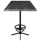 This Holland Bar Stool OD21642BWOD36SQRustic 36" square rustic wood laminate outdoor / indoor bar height table with foot rest base is a great way to add a practical seating option to you indoor or outdoor dining space while still adding a look that is sure to catch your guests' attention. With a top constructed from a premium, composite blend material with a scratch, impact, and burn resistant laminate surface, this table will stand up in high volume operations without becoming worn down or damaged over time. The rustic wood laminate top color is as attractive as it is durable, so your customers will be left with a lasting impression of your operation!