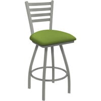 Holland Barstool XL 410 Jackie 30" Ladderback Swivel Bar Stool with Anodized Nickel Finish and Canter Kiwi Green Seat