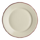Bring a familiar flair from yesteryear to your table settings with this Homer Laughlin from Steelite International Styleline black 5 1/2" scalloped china plate. Combining warm, ivory bodies with bold, colored edges, the Styleline collection lends subtle elegance with a vintage touch. This plate is perfect for serving small salads or bread and butter before guests' meals are delivered. While its black lining offers a way to add color contrast to dining areas, the scalloped design lends a wistful overall appearance reminiscent of style trends from decades past. The distinctive scalloped edge makes this Styleline piece a perfect choice for traditional table settings at restaurants, catered events, and banquets!