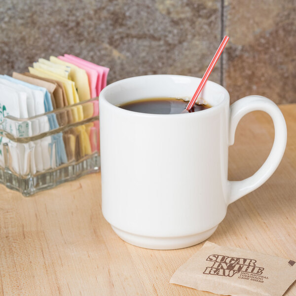 Use this Homer Laughlin from Steelite International Pristine Ameriwhite 9 oz. mug to serve gourmet coffee, tea, cappuccino, or hot chocolate. This crisp, bright white (Ameriwhite) 9 oz. mug features a silky texture, with chip-resistant durability.