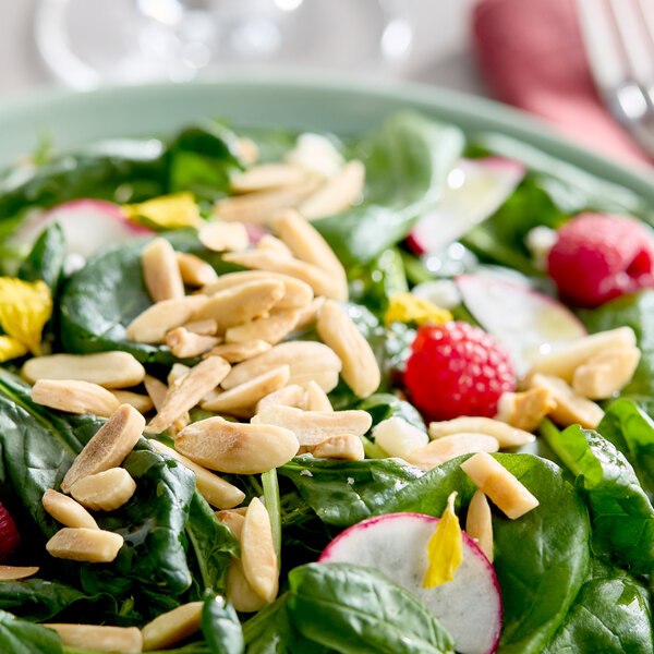 These almonds are conveniently pre-slivered, making them a versatile option for chefs to easily incorporate in recipes without much preparation required. They can be used as a garnish or included in the batter of your favorite baked goods, such as almond cake, croissants, and cookies. These almonds are also a great addition to house-made granola, and they make a delicious topping for ice cream, casseroles, and salads. This bulk 5 lb. supply will keep your establishment well stocked with this tasty ingredient! A great way to add extra flavor and protein to your dishes, these almonds are sure to be a hit in your busy kitchen!
