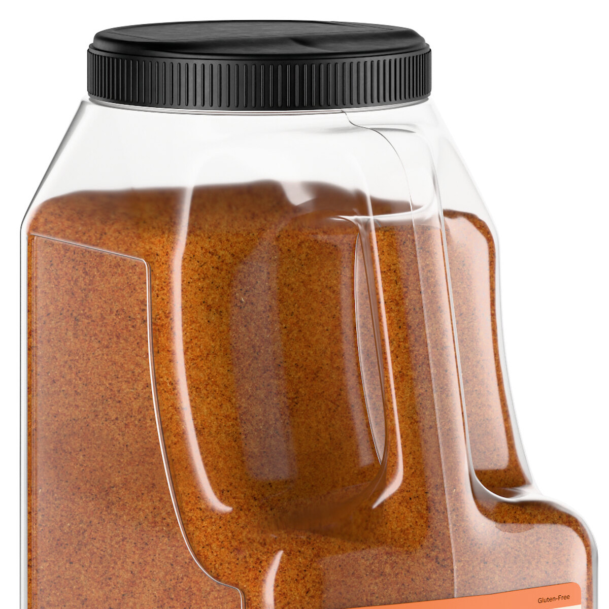 This large 7.5 lb. container is perfect for restaurants, bars, catering services, and other commercial kitchens. Plus, it features a black flapper lid that makes it easy to pour or measure the spice by the spoonful without having to take the entire lid off the container.