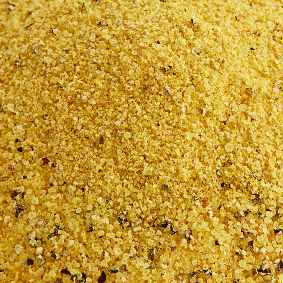 With a savory blend of citric acid, salt, celery, sugar, onion, and garlic combined with the earthy pungency of black pepper, this pre-mixed seasoning contains the perfect balance of tang and pepper flavor. This seasoning is specially made with larger pieces of salt and pepper to add an appealing texture to your foods. Not only does it contain tart citrus and pepper flavor, this versatile seasoning also adds extra zest to marinades, dressings, poultry, seafood, vegetables, and salads! This bulk seasoning is a practical option for high-volume kitchens to save on preparation time and reduce the cost of seasoning blends.