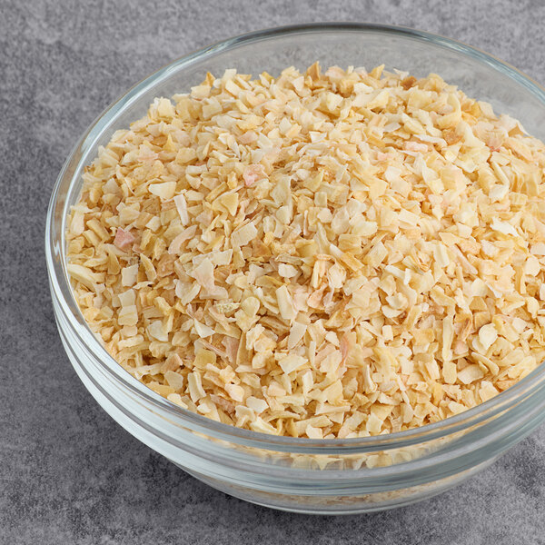 Minced onion is made from dried, finely diced onion, and this variety adds texture to your dishes. It delivers a bold onion flavor with slightly sweet taste that pairs well with a wide range of ingredients, making it a versatile addition to any commercial kitchen. This onion comes in a minced form that is less likely to clump than onion powder, making it perfect for use in recipes. Use it as a dry rub to add deep flavor to pork and beef or use it in favorite Italian dishes like focaccia or pasta sauce.