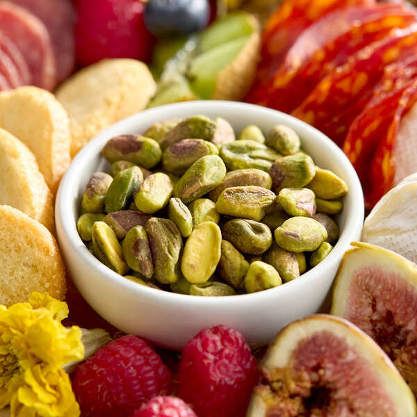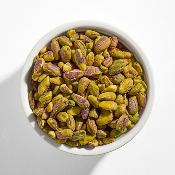 These raw pistachios come pre-split into halves, making them a versatile option for chefs to easily incorporate in recipes without much preparation required. They can be used as a garnish or included in your favorite baked goods and desserts, such as baklava, biscotti, gelato, and cake. These pistachios are also a great addition to house-made trail mix. Blend them into a smooth, creamy consistency to create trendy confections, such as Dubai chocolate. They also make a great substitution for pine nuts in pesto! This bulk 5 lb. supply will keep your establishment well stocked with this tasty ingredient! A great way to add extra flavor and protein to your dishes, these pistachios are sure to be a hit in your busy kitchen!