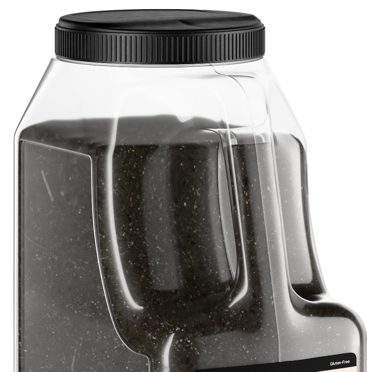 This large 5 lb. container is designed to refill pepper shakers (sold separately), and it's perfect for restaurants, bars, catering services, and other commercial kitchens. Plus, it features a black flapper lid that makes it easy to pour into your shaker or to measure the spice by the spoonful without having to take the entire lid off the container.