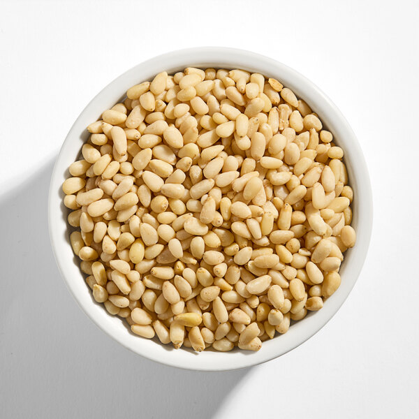 For a richer, nuttier taste, roast these pine nuts to intensify their flavor and bring out a beautiful golden color. These versatile pine nuts can be used as a garnish or included in the batter of your favorite baked goods, such as pignoli cookies, cake, and biscotti. They also make a delicious topping for ice cream, casseroles, and salads. Blend them with basil, garlic, salt, olive oil, and Parmigiano Reggiano to create a traditional Italian pesto. This bulk 5 lb. supply will keep your establishment well stocked with this tasty ingredient! A great way to add extra flavor and texture to your dishes, these pine nuts are sure to be a hit in your busy kitchen!
