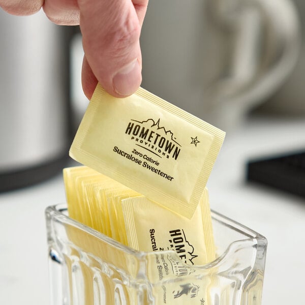 Add a touch of sweetness without the calories with this Hometown Provisions yellow sucralose sugar substitute packet! Featuring the easily recognizable yellow packaging that customers will know to reach for, it's a great alternative for sugar and other calorie-laden sweeteners. Comparable to Splenda, this sucralose product is a calorie-free way to offer a pleasant, sweet taste that can be used to enhance the flavor of beverages, cereals, and fresh fruit. It's also carbohydrate- and fat-free, making it ideal for customers with dietary restrictions.