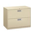 Keep important files organized with this Hon H682LP Brigade 600 Series black two-drawer lateral filing cabinet! Great for any business, doctor's office, or reception area, this cabinet is built to be a space-saving addition, helping you keep patient or client files organized without cluttering up wall or desk space. Its straight edges provide a sleek, clean professional appearance, while the concealed handles keep the front of the cabinet unobstructed. For smooth operation and easy access to the files you need, each drawer features a steel ball bearing and full extension. Plus, the durable steel construction ensures that this filing cabinet will withstand everyday use.