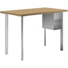 This desk's modern minimalist design adds style to any space and easily complements your existing decor. It features a U-storage integrated storage bin that helps keep books, binders, and other supplies right within reach. Plus, leveling glides on the bottom of the legs ensure the desk's stable use, even on uneven floors. This item ships unassembled.