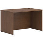Create the ideal workstation with this HON Mod 48" x 30" slate teak laminate desk shell. This desk shell can be used as a freestanding unit or as the main component of a HON laminate workstation. Pair it with a return shell to create an L-shaped workstation, or add a bridge and a credenza shell to create a U-shaped workstation (all sold separately). HON's metal-to-metal fastening system allows for a precise fit and impressive durability when connecting individual units. This desk shell's highly durable laminate surface resists stains, scratches, and spills to withstand daily use and keep your desk looking new for years to come. Plus, it is easy to clean and requires less maintenance compared to wood options.