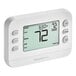 Designed for ease of installation, this thermostat comes with a UWP wall plate. Additionally, this thermostat has a lockout feature to stop the fan after a cooling call. It boasts an ambient operating temperature of 32-102 degrees Fahrenheit. It requires a 24V AC electrical connection for operation, but it can also be operated or backed up using the 2 included AA batteries.