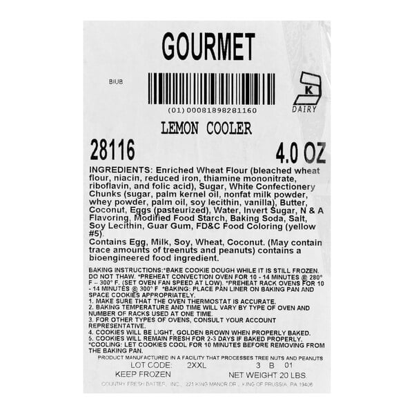 - Refreshing lemon cookie with white confectionary chunks, coconut, and natural lemon flavor