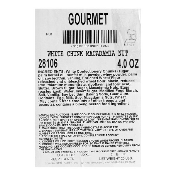 - Made with fresh, natural ingredients like real white chocolate chips and macadamia nuts