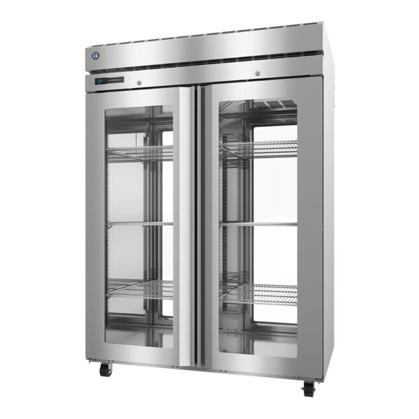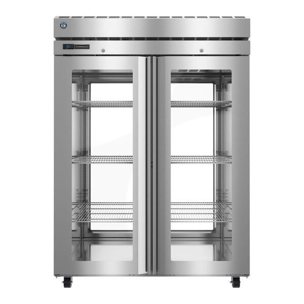 Providing impressive performance and dependable durability, this Hoshizaki PT2A-FGE-FGE 55" glass door pass-through refrigerator is engineered to hold your refrigerated ingredients in a safe environment. This particular model helps streamline your kitchen operations with a pass-through design. The design makes it accessible from both sides, perfect for placement between work areas in the kitchen; simply load dishes from one side, and retrieve them from the other side.