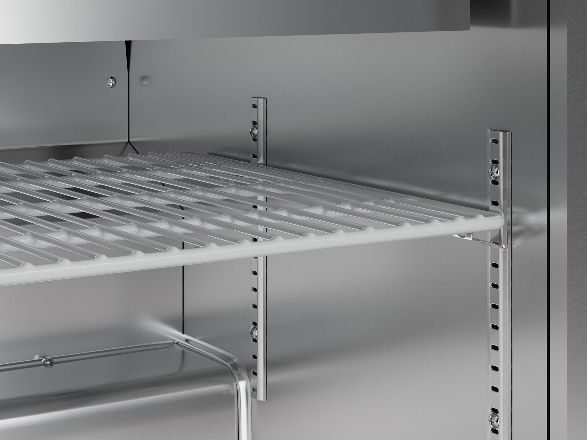 Beneath the worktop is additional storage space, with 3 self-closing, spring-assisted, stay-open doors with a "stepped" design that guards the door gaskets when products are removed from the inside. The field reversible doors feature 2" CFC-free, foamed-in-place polyurethane insulation, making the interior cabinets great for storing ingredients like extra deli meat, cheese, condiments, and sauces. Not to mention, the magnetic gasket design and extruded aluminum flush mount door handles make maintenance and operation easier.