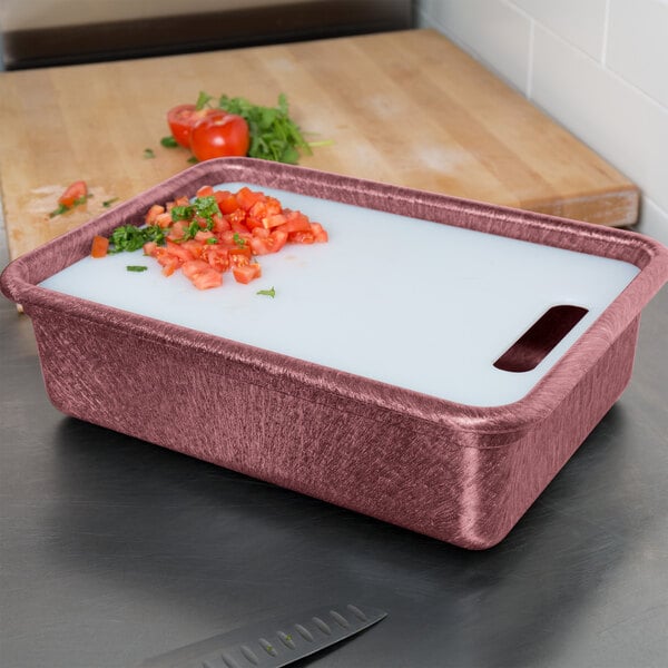 Designed to accentuate your food offerings and keep your countertops looking like new, this HS Inc. Prep n Serve deep tote and cutting board set is the perfect additional to any busy commercial kitchen or catering event. Its versatile 15 3/8" x 10 1/4" x 4 3/4" tote features an attractive raspberry color that is bound to enhance your delicious displays, while the included cutting board is is both lightweight yet sturdy enough to supply dependable service during prep. Plus, the cutting board fits seamlessly atop the tote for on-the-go use. This item's durable polyethylene material is sure to supply years of service as well.